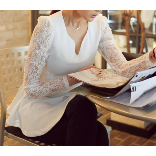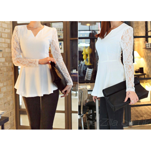 Peplum Top with Lace Sleeves