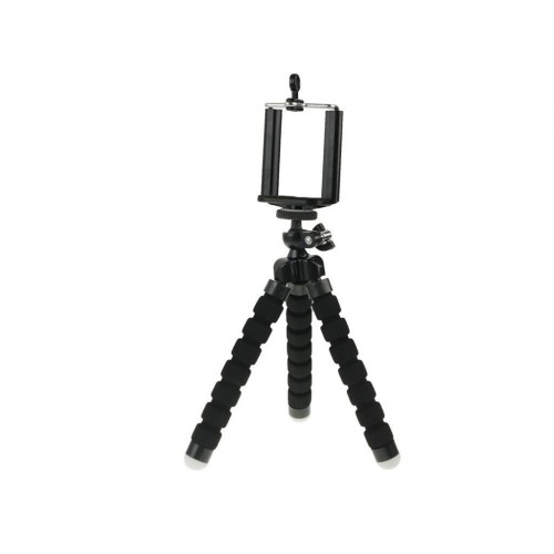 The TigerZilla Mini Tripod with Smartphone Holder is small and flexible and lets you position your smartphone or camera almost anywhere to help you capture the perfect shot. Completely flexible and versatile, it simply and securely fastens to your camera in seconds. It features flexible leg joints that bend and rotate in all directions so you can wrap it securely to or on just about anything. It can wrap it around poles, posts, railings, branches, rocks and much more. The tripods non-slip rubber feet grips provide enhanced stability on uneven surfaces.