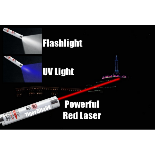 With Powerful Red Laser, White LED Flashlight and UV Light (Money Checker). Batteries Included.